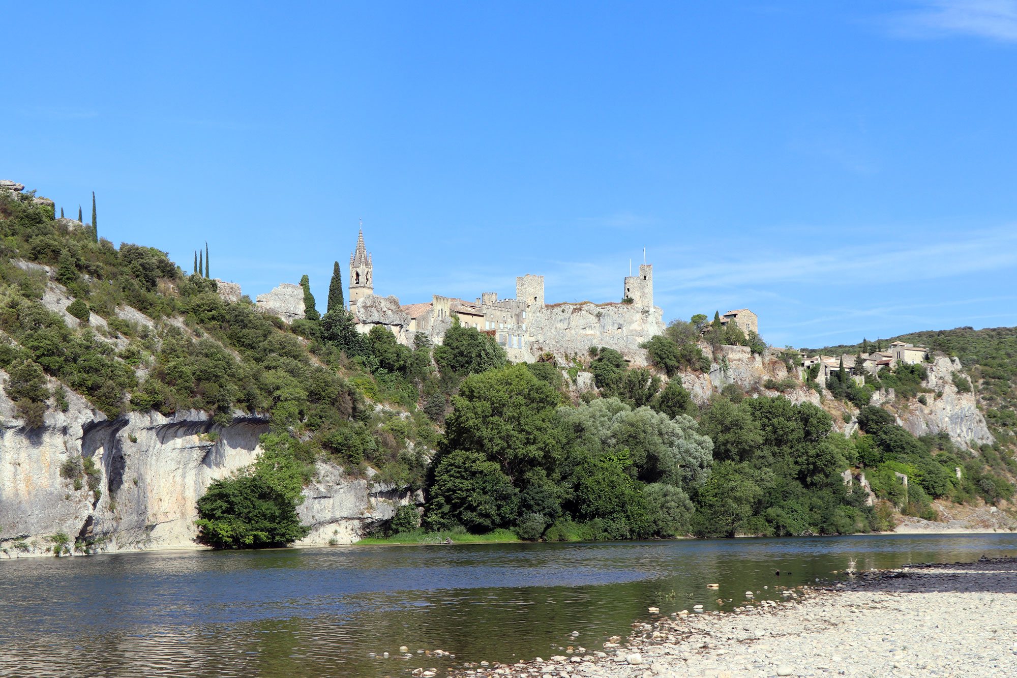 如果说 Aiguèze 这个名字的由来是水--“agua”,那显然不是偶然的!村庄坐落在阿尔代什峡谷口的悬崖上,与潺潺的河流密不可分!沿着 “城堡”(Castelas)--一条古老的城堡防御步道--前行,您就能发现这一得天独厚的自然环境,它为村庄增添了无限美景。在这里,您可以欣赏到阿尔代什山(Ardèche)和旺图山(Mont Ventoux)的壮丽景色,以及罗讷河谷(Côtes du Rhône)的栅栏和葡萄园。
