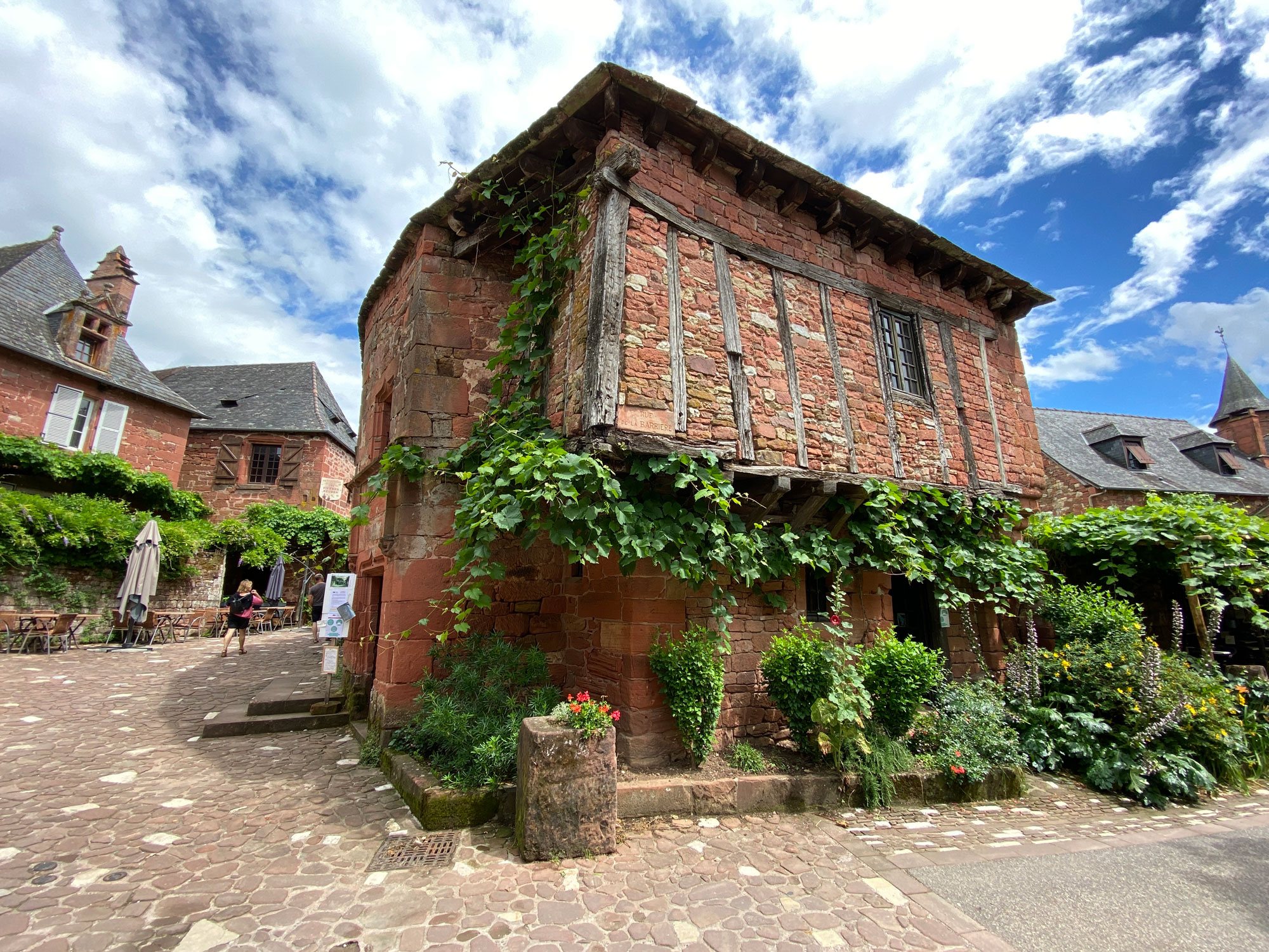 Collonges-la-Rouge 距 Brive-la-Gaillarde 大约 20 公里,位于利穆赞大区和 Quercy 大区的交界处,在一片对比鲜明的绿色山谷中显得格外醒目。最佳游览时间是早晨。您可以在咖啡馆的露台上小坐片刻,聆听村庄逐渐苏醒的声音,欣赏一天中这个时候的特殊光线,因为它放大了这颗建筑明珠。气势恢宏的建筑顶上是大块的石板或琉璃瓦屋顶,偶尔出现的炮塔或瞭望塔也会吸引人们的眼球......人们熟知的 “科龙格 ”是力量与精致、简洁与优雅的完美结合。在这里,每一块石头都是历史的见证。过去,这里曾是朝圣者前往圣地亚哥-德孔波斯特拉(Santiago de Compostela)的中转站,村子里保留着建于 11 和 12 世纪的圣皮埃尔教堂(Saint-Pierre)。文艺复兴时期的城堡讲述了中世纪村庄如何在 13 世纪成为强大的图伦子爵领地的城堡。16 世纪古老的谷物和葡萄酒市场仍保留着公用烤箱,它提醒人们这座贸易城市的繁荣时代。现在的小教堂是一个展览中心,从 1765 年到 19 世纪末,这里一直是 Pénitents Noirs 兄弟会的所在地,他们的任务之一就是免费埋葬死者。